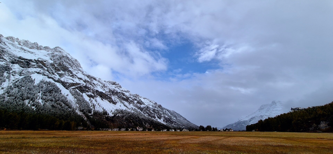 In der Nacht hat es geschneit, nicht ganz hinunter bis auf unsere 1800 m aber rundherum sind die Berge angezuckert.